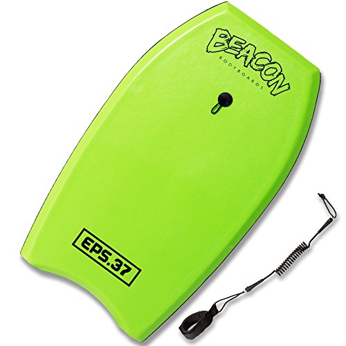 BEACON BODYBOARDS 37 Inch Bodyboard with Wrist Leash, EPS Core, and Slick Bottom – Green Body Surfing Board