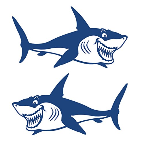 MonkeyJack 2 Pieces Blue Shark Decals Kayak Canoe Boat Car Laptop Surfboard Window Stickers – Waterproof and Long Lasting