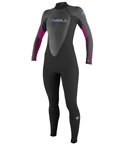 O’Neill Women’s Reactor 3/2mm Back Zip Full Wetsuit, Black/Graphite/Berry,10