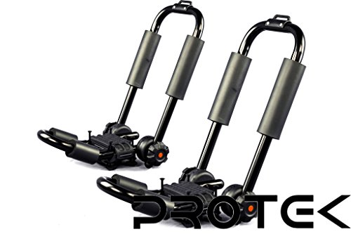 Protek Folding Foldable Collapsible J Shape Bar 150 Lbs Kayak Canoe Inflatable Paddle Board Surfboard Roof Rack Carrier Car SUV Roof Top Mount with 8 Ft Lashing Straps Tie Down Ratchet