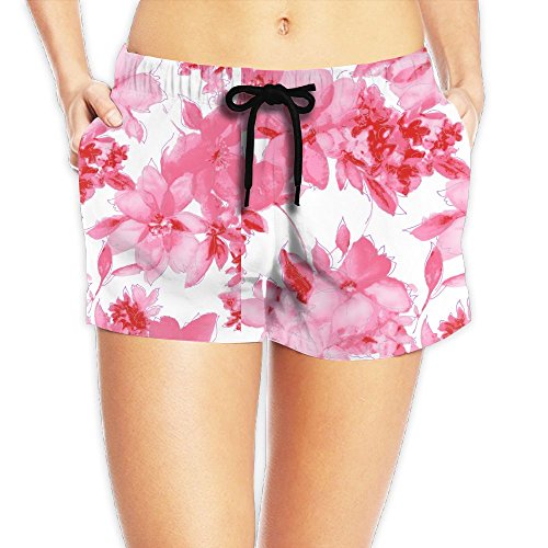 Vintage Flower Wonderfullly Printed Swim Surf Board Shorts For Women With Pockets